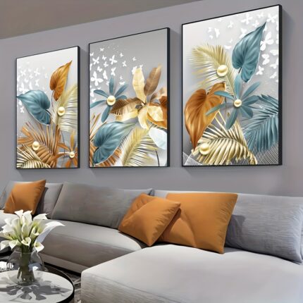 golden leaves butterfly tropical plant abstract canvas painting