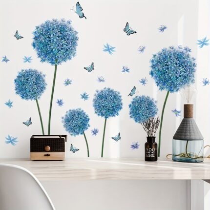Vibrant Blue Dandelion Wall Stickers – Perfect for Living Room & Bedroom Decor