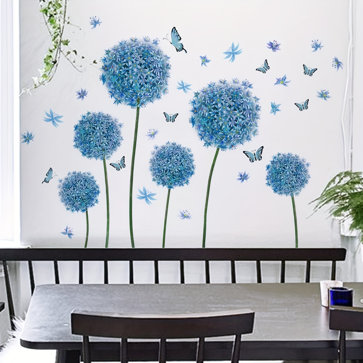 Home Decor Vibrant Blue Dandelion Wall Stickers – Perfect for Living Room & Bedroom Decor